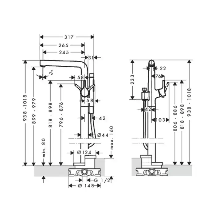 Hansgrohe Talis S, Смеситель для ванны, однорычажный, напольный, Цвет: хром