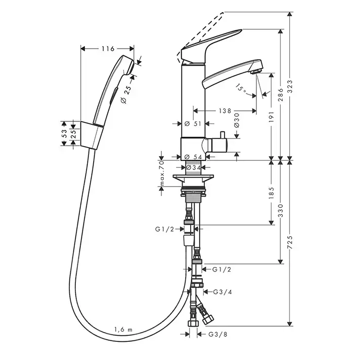 Hansgrohe Talis Смеситель для раковины, на 1 отв., с ручной лейкой, цвет: хром