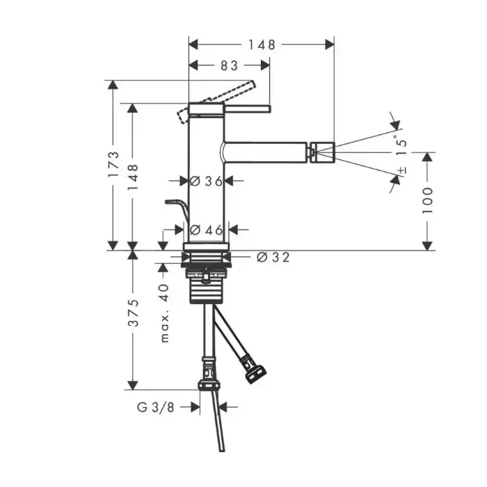 Hansgrohe Tecturis S Смеситель для биде, 1 отв., с донным клапаном, цвет: белый матовый