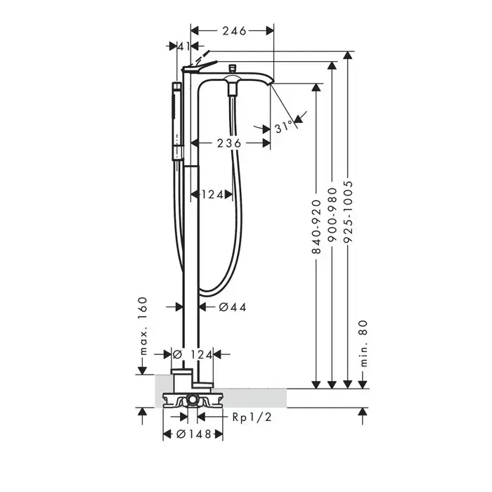 Hansgrohe Vivenis Смеситель для ванны наполньный, с ручной лейкой, цвет: черный матовый
