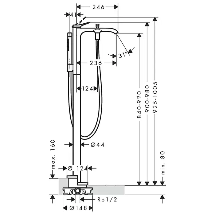 Hansgrohe Vivenis Смеситель для ванны, наполньный, с ручной лейкой, цвет: хром