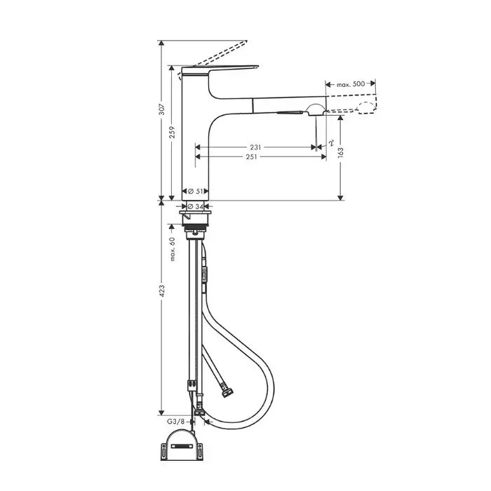 Hansgrohe Zesis M33 Смеситель для кухни, 1 отв., с вытяжным душем, sBox lite, цвет: хром