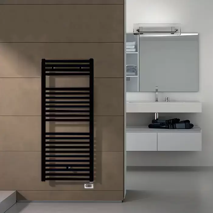 Irsap Ares Полотенцесушитель электр. 58x111.8x3см (22 трубок-2 пром), мощность:700 ватт, с электр/термостатом, провод: 120см, цвет: черный матов(K1)