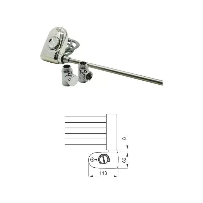 Irsap Ares Полотенцесушитель электрический 58x111.8x3см (22 трубок-2 пром), мощность:400 ватт, с хромир. регулятором темп-ры, провод: 120см, цвет: хром