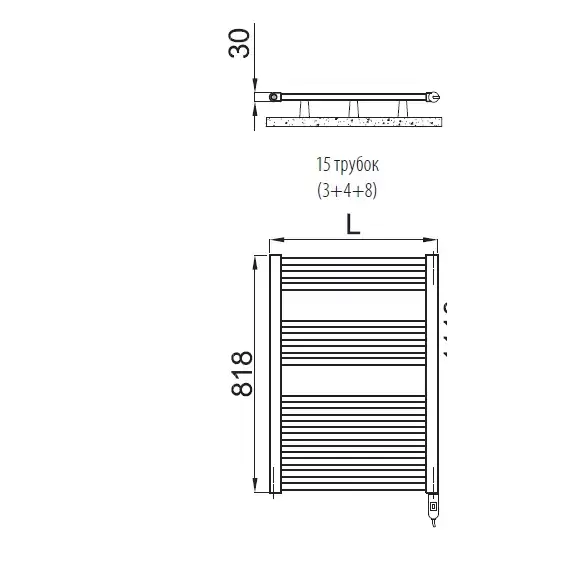 Irsap Ares Полотенцесушитель электрический 58x81.8x3см (15 трубок-2 промежутка), мощность: 400 ватт, с хромир. регулятором, провод: 120см, цвет: хром