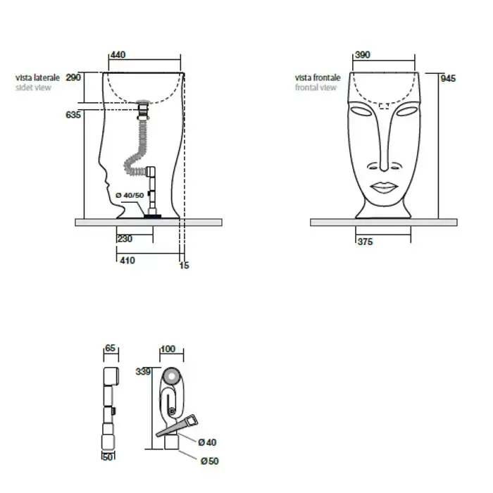 Kerasan Artwork Раковина 45х51х94.5 см, без отв., свободностоящая "MOLOCO", слив в стену, цвет: Bruno matt