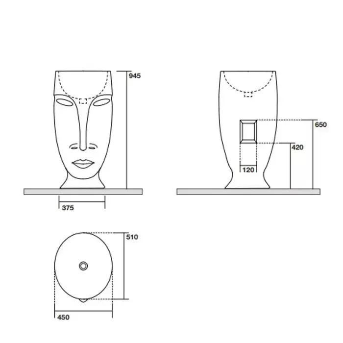 Kerasan Artwork Раковина 45x51x94.5 см, без отв., свободностоящая "MOLOCO", слив в стену, цвет: белый/серебро