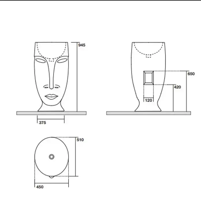 Kerasan Artwork Раковина 45x51x94.5 см, без отв., свободностоящая "MOLOCO", слив в стену, цвет: белый/античная платина