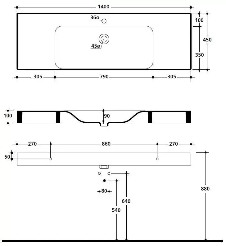Kerasan Cento Раковина 140х45 см, 1 отв., цвет: белый