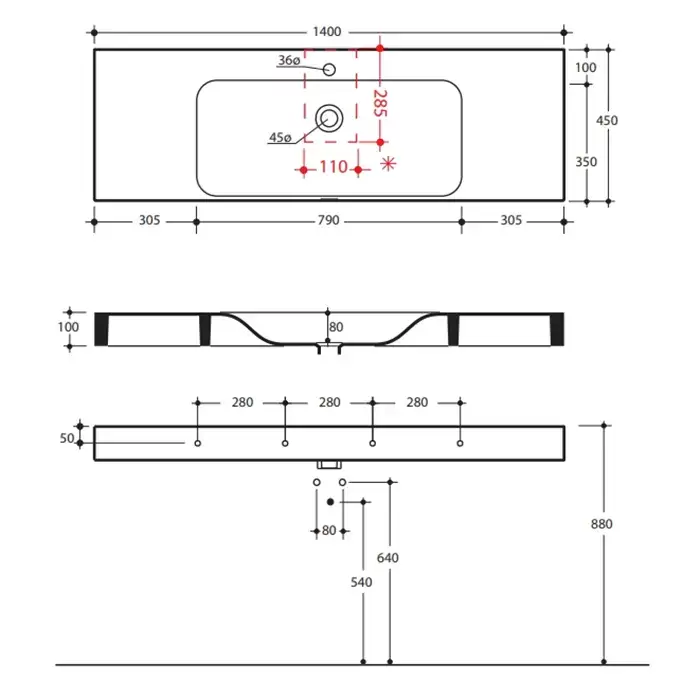 Kerasan Cento Раковина 140х45 см на металлическая структуре, 1 отв., навесная/встраиваемая, цвет: белый