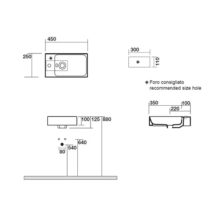 Kerasan Cento Раковина 45х25 см, 1 отв., цвет: белый