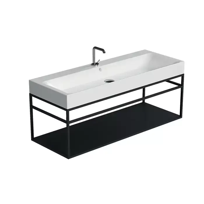 Kerasan Cento Стальная структура 120х45см, с раковиной на 1 отв,, подвесная, с металлической полкой, цвет: черный матовый
