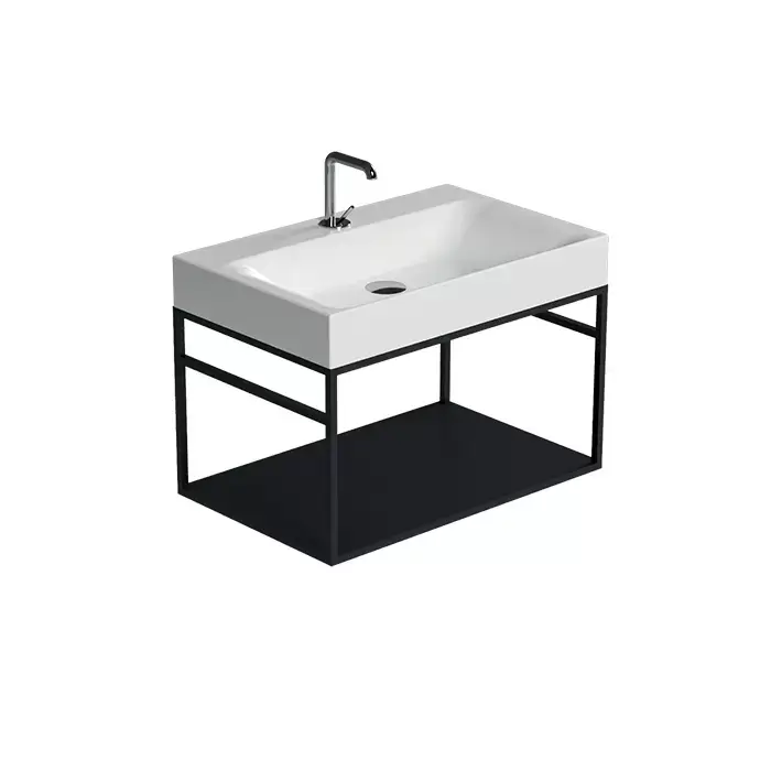 Kerasan Cento Стальная структура 70х45см, с раковиной на 1 отв, подвесная, с металлической полкой, цвет: черный матовый