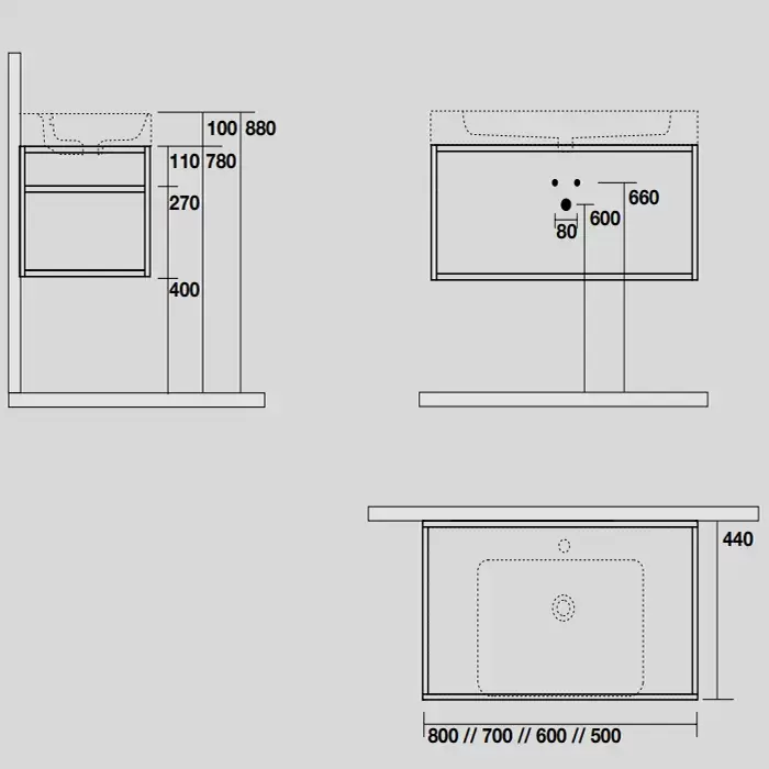 Kerasan Cento Стальная структура 80х45см, с раковиной на 1 отв,, подвесная, с металлической полкой, цвет: черный матовый