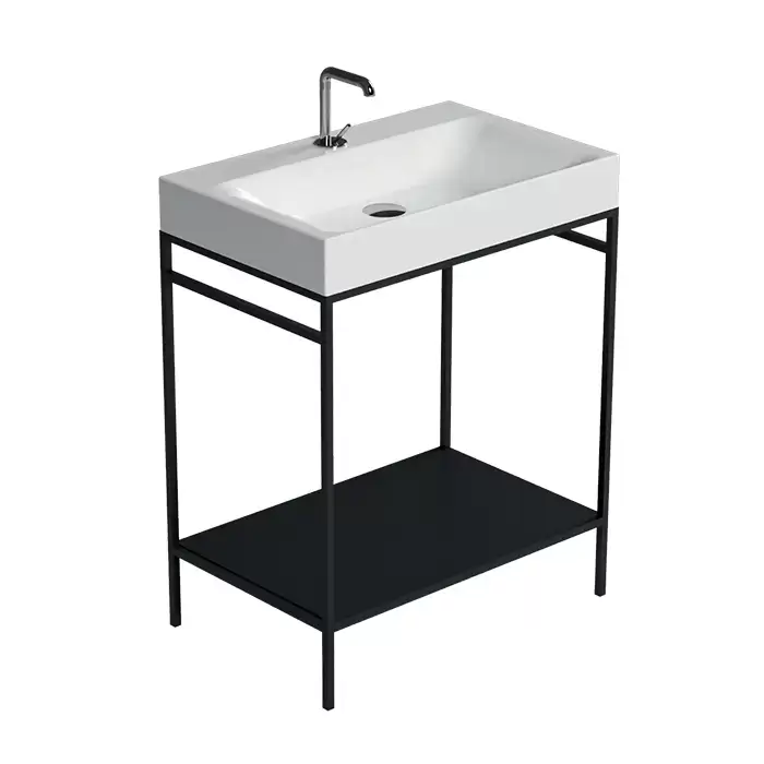 Kerasan Cento Стальная структура с раковиной 80х45см на 1 отв,, напольная, с металлической полкой, цвет: черный матовый