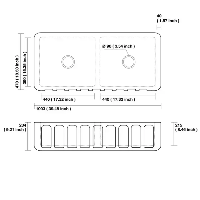 Kerasan Hannah Surrey Раковина 100x47x23 см, без отв., кухонная, цвет: белый
