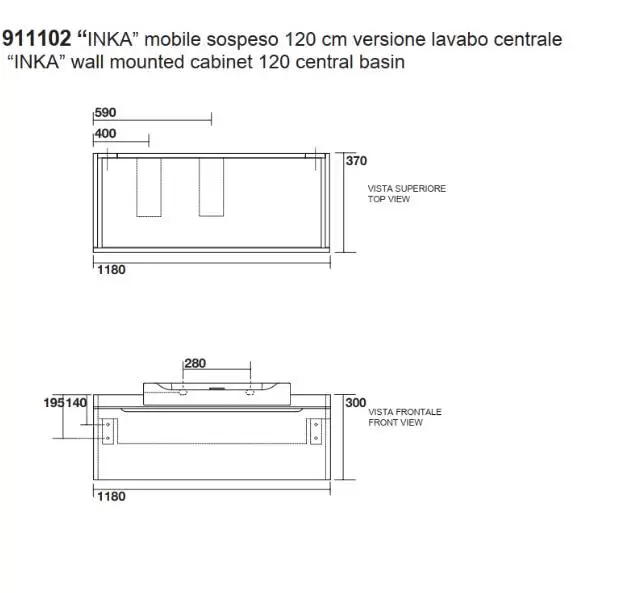 Kerasan Inka Project База INKA подвесная 120см, для установки раковины 60х40 см, по центру, раковина, цвет: белый глянцевый/черный матовый