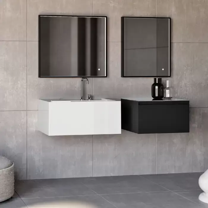 Kerasan Kanaal Тумба подвесная 60х46.5см, с 1 ящиком, стеклянная столешница, цвет: черный матовый