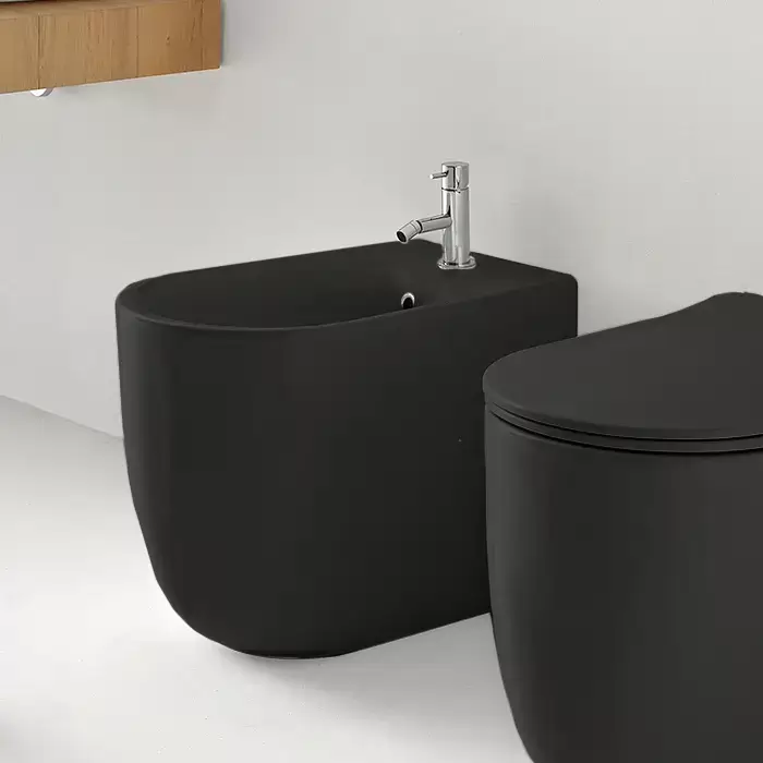 Kerasan Nolita Биде напольное с 1 отв. под смеситель 55х35 см, с креплениями WB5N, цвет: черный матовый