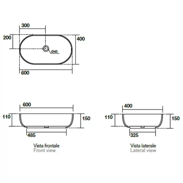 Kerasan Nolita Раковина 60х40 см, без отв., накладная, цвет: Borgogna matt