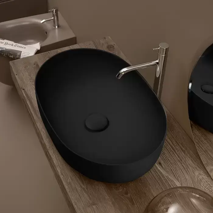 Kerasan Nolita Раковина 60х40 см, без отв., накладная, цвет: черный матовый
