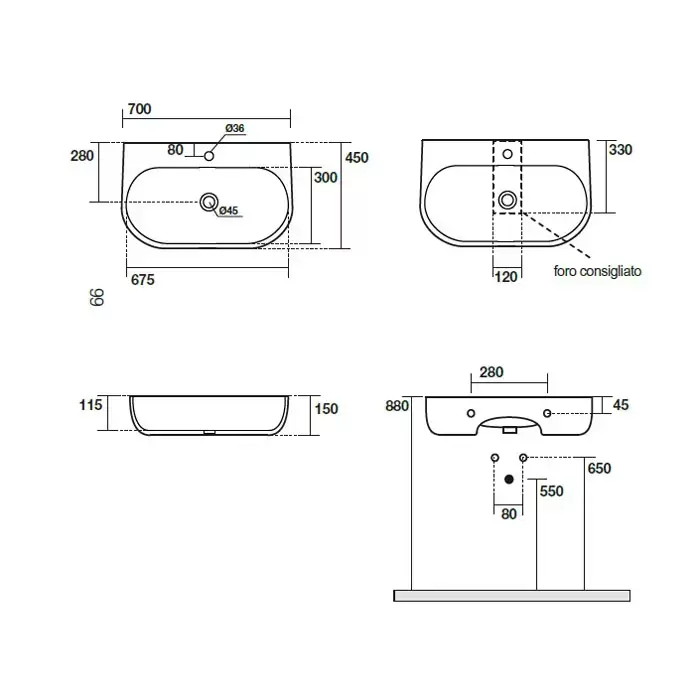 Kerasan Nolita Раковина 70х45 см, 1 отв., цвет: белый