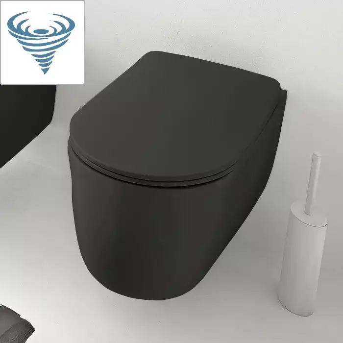 Kerasan Nolita Унитаз безободковый подвесной 55х35 см, Tornado, с креплениями, цвет: черный матовый
