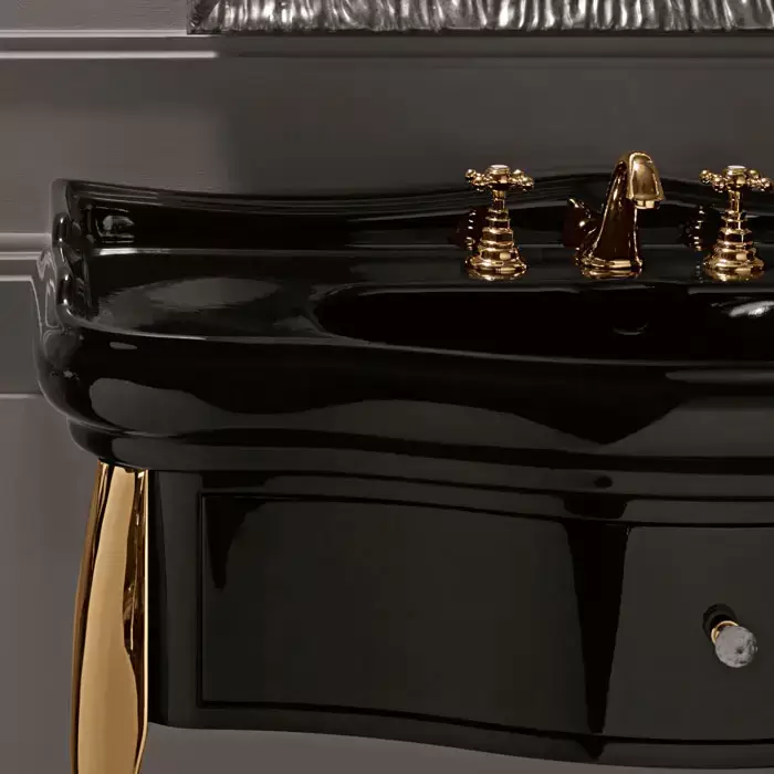 Kerasan Retro Комплект мебели, ножки: золото, ручки: кристалл/кольцо-золото, 100см, подвесной, Цвет: черный глянец,