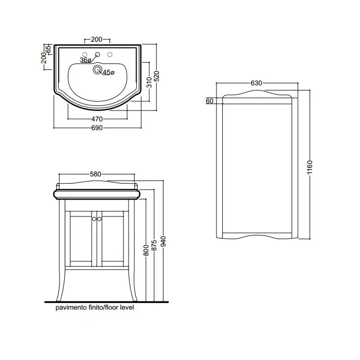 Kerasan Retro Комплект мебели, с закругленным фасадом, 69 см, напольный, цвет: noce