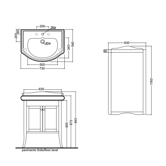 Kerasan Retro Комплект мебели, с закругленным фасадом, 73см, напольный, цвет: белый матовый