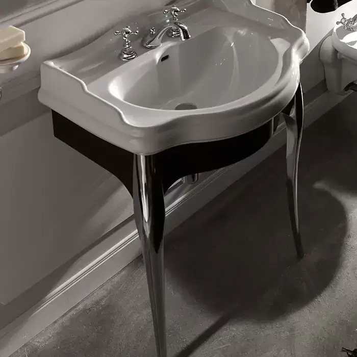 Kerasan Retro Консоль с белой раковиной 73см, подвесная, цвет: черный / хром