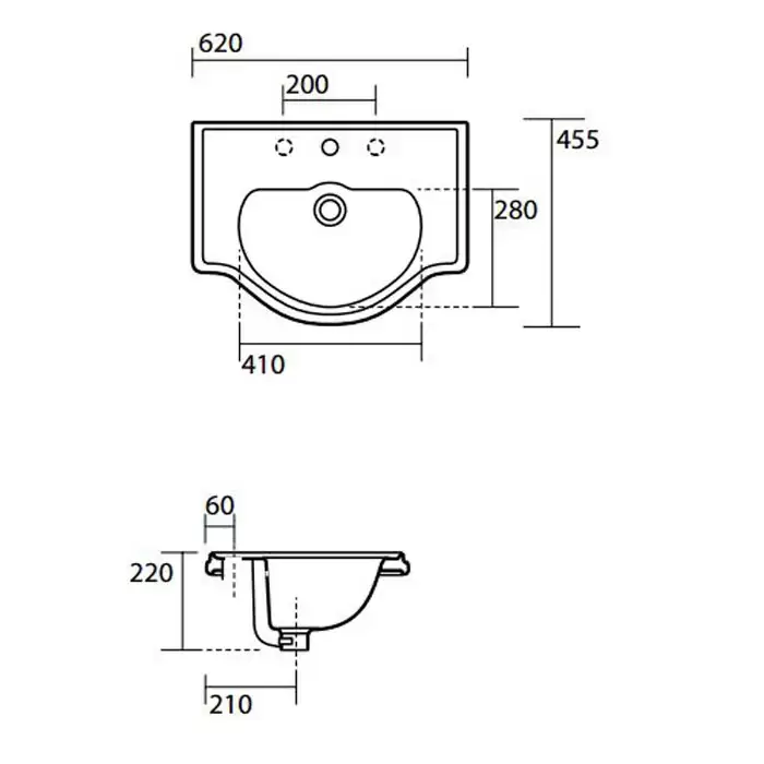 Kerasan Retro Раковина 62х45.5 см, 3 отв., цвет: белый