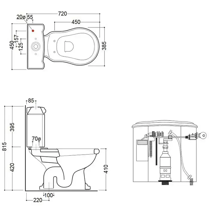 Kerasan Retro Унитаз 72х38.5см., моноблок, слив в пол, ручка смыва справа, цвет: белый/бронза