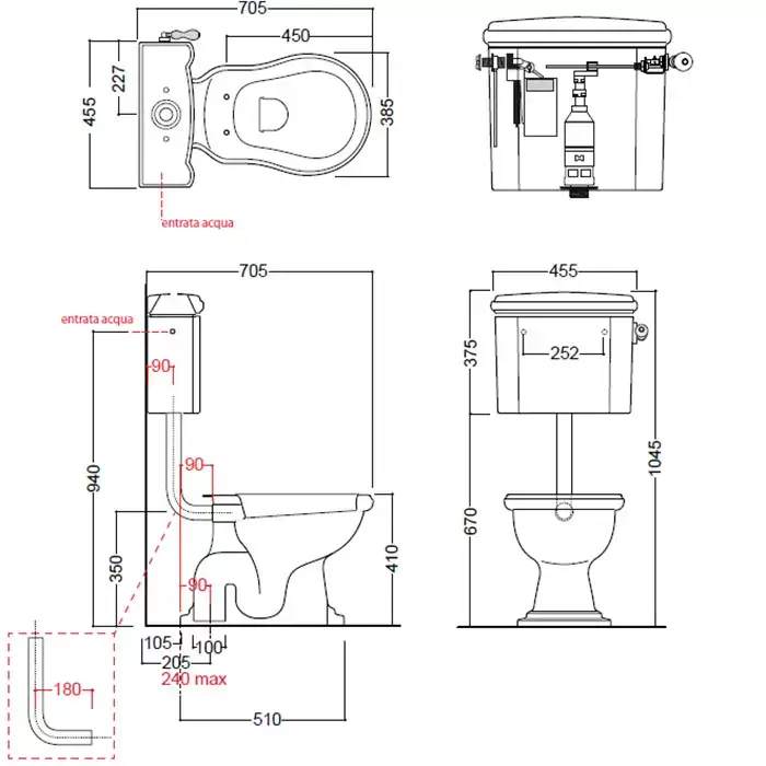 Kerasan Retro Унитаз 72х38.5см., приставной, с низким бачком, слив в пол, цвет: белый/бронза