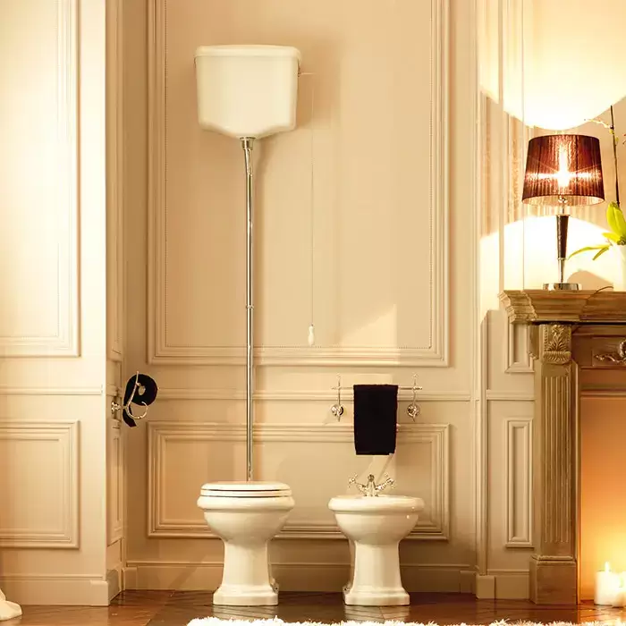 Kerasan Retro Унитаз 72х38.5см., с высоким бачком, слив в стену, цвет: белый/хром