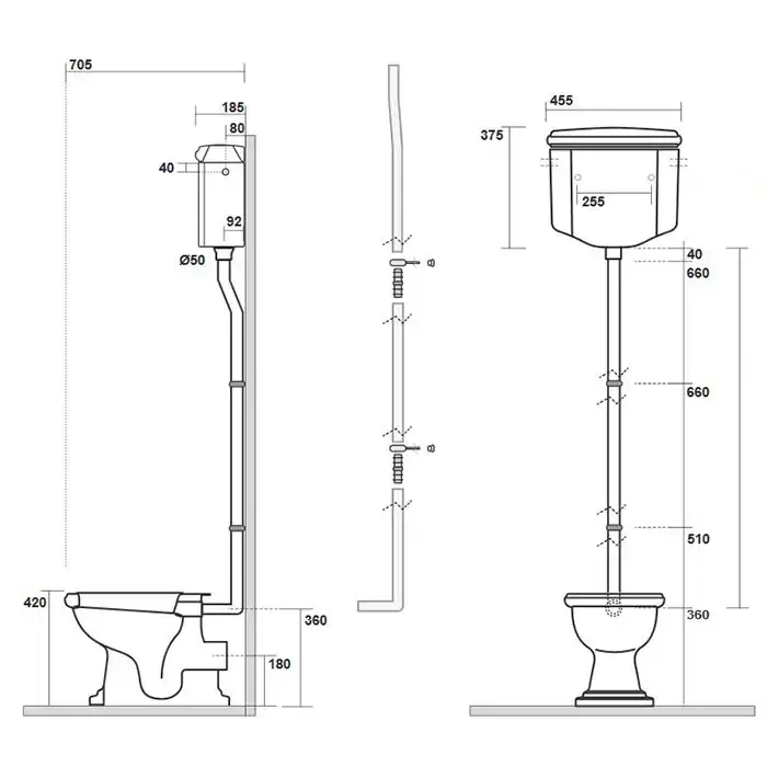 Kerasan Retro Унитаз 72х38.5см., с высоким бачком, слив в стену, цвет: белый/золото