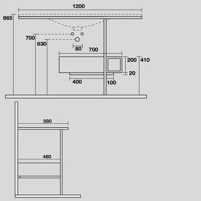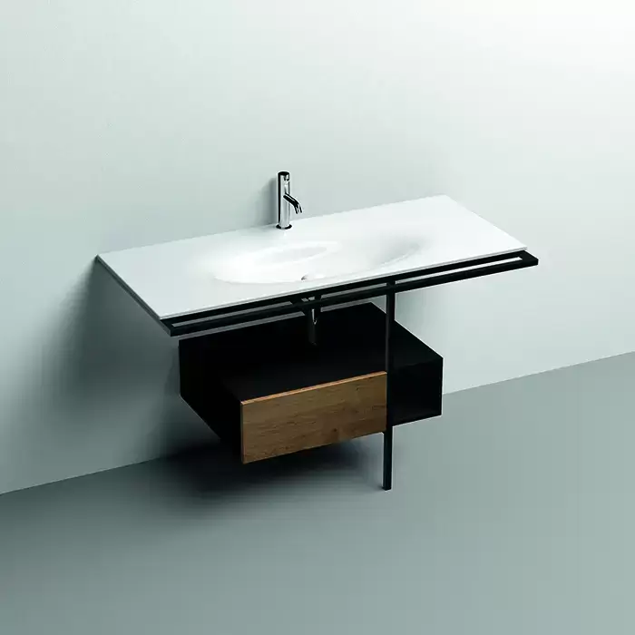 Kerasan Shape Thelma Металлическая структура для раковины 122см, напольная, цвет: черный матовый/дуб