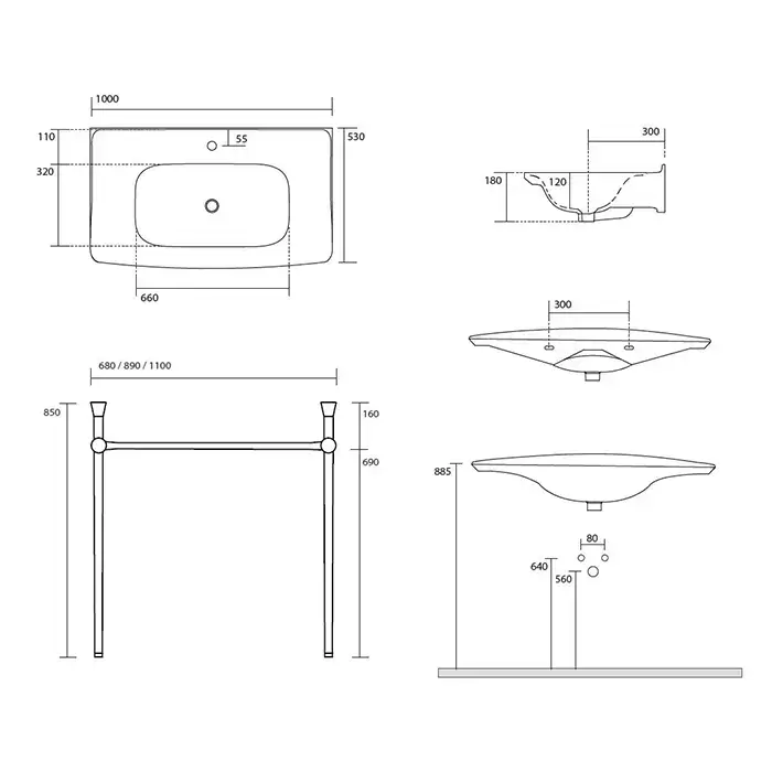 Kerasan The New Yorker Металлическая консоль с раковиной 100х53см., с 1 отв., цвет: черный матовый