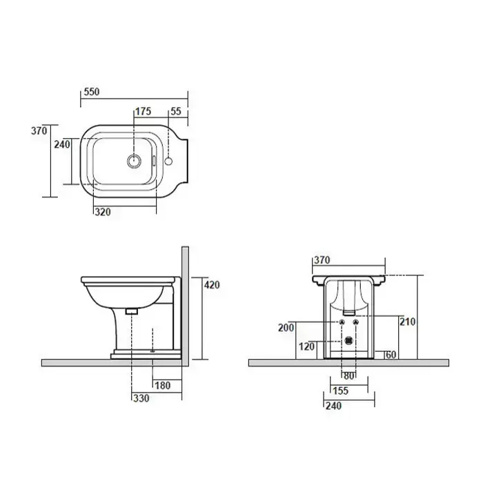 Kerasan Waldorf Биде напольное пристенное 55х37см с 1 отв. под смеситель, с заглушкой, цвет: черный/золото