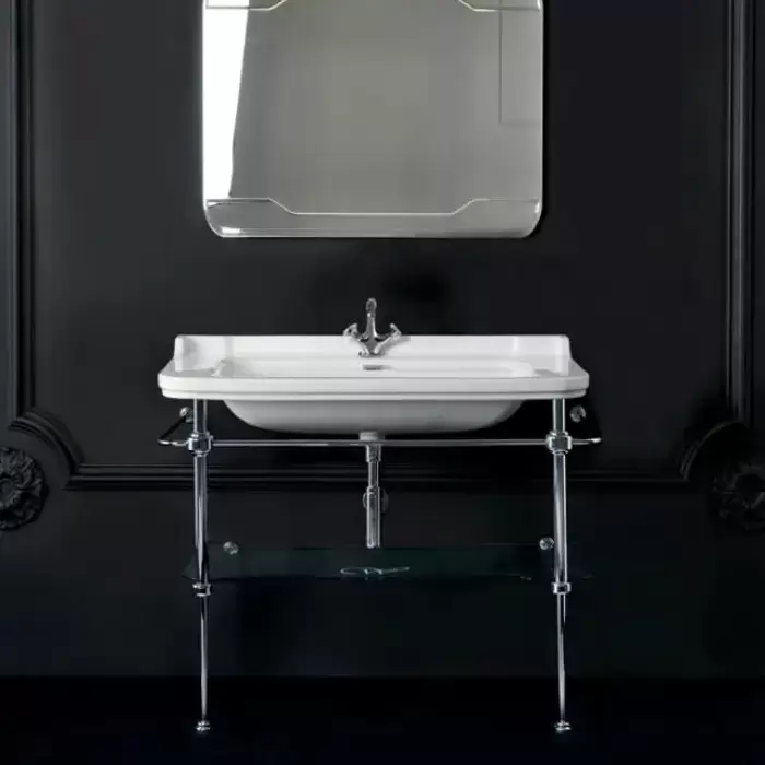 Kerasan Waldorf Металлическая структура 120х42см, с раковиной на 3 отв., со стеклянной полочкой, напольная, цвет: хром с раковиной