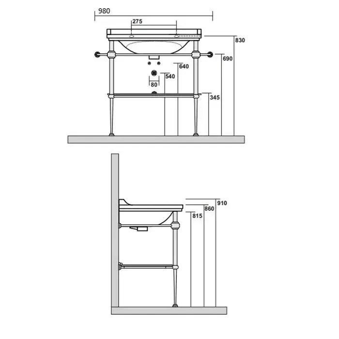 Kerasan Waldorf Металлическая структура 80х42см, с раковиной на 3 отв, со стеклянной полочкой, напольная, цвет: хром