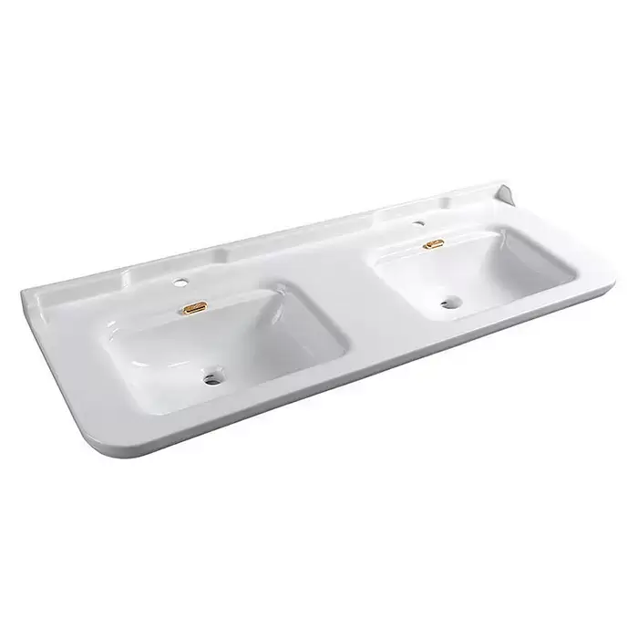Kerasan Waldorf Раковина 150х55 см, 1 отв., двойная, керамическая, цвет: белый/золото