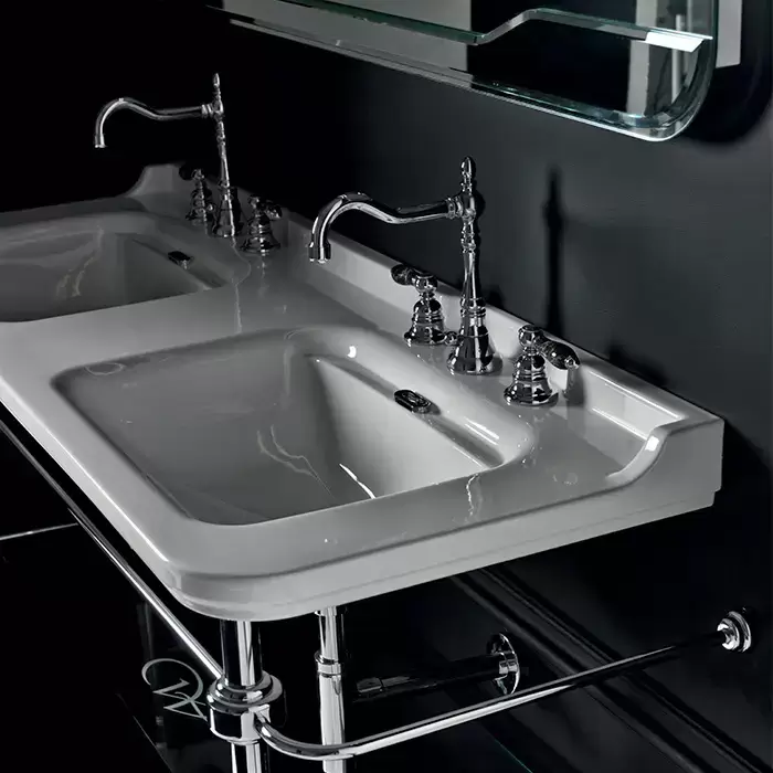 Kerasan Waldorf Раковина 150х55 см, 1 отв., двойная, керамическая, цвет: белый/хром