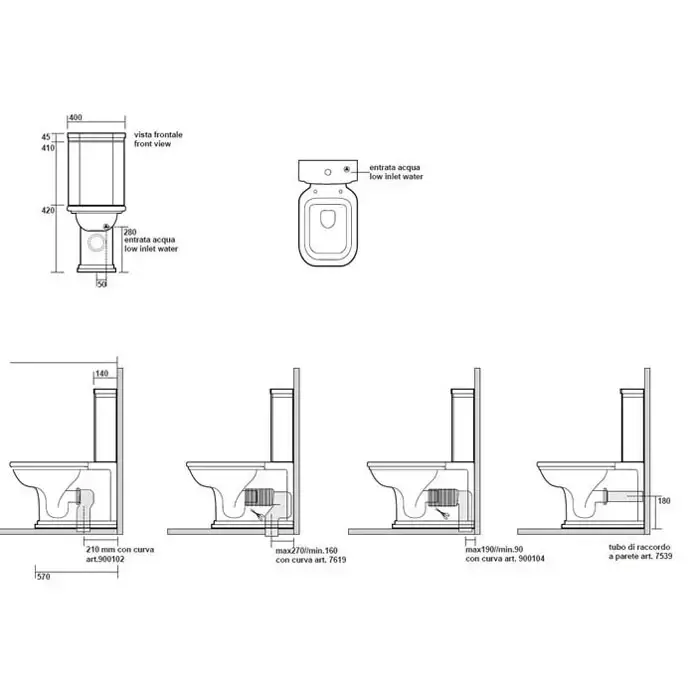 Kerasan Waldorf Унитаз-моноблок 68х40см, цвет: белый/бронза