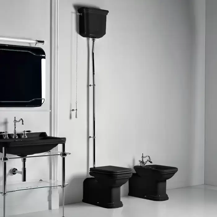 Kerasan Waldorf Унитаз пристенный удлиненный, с высоким бачком- уст-ка на расстоянии 2см от стены и трубой, цвет: черный/хром