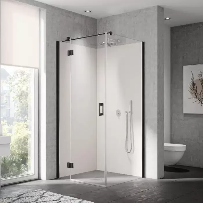 KERMI Liga Душевой угол SNL+TWP на поддон 90x90х200см., цвет: черный матовый/прозрачное стекло с Kermiclean
