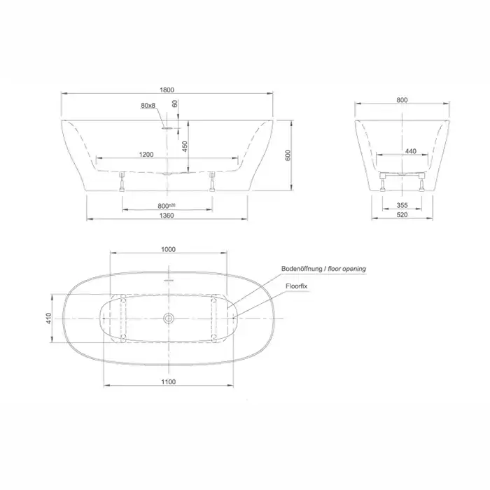 KNIEF Dream Ванна отдельностоящая 180х80х60см, с щелевым переливом, цвет: белый