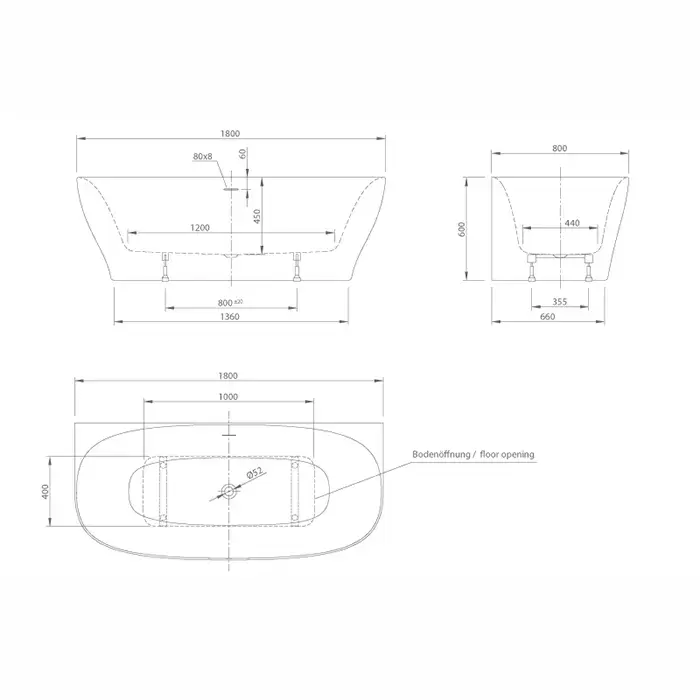 KNIEF Dream Wall Ванна пристенная 180х80х60см, с щелевым переливом, цвет: белый