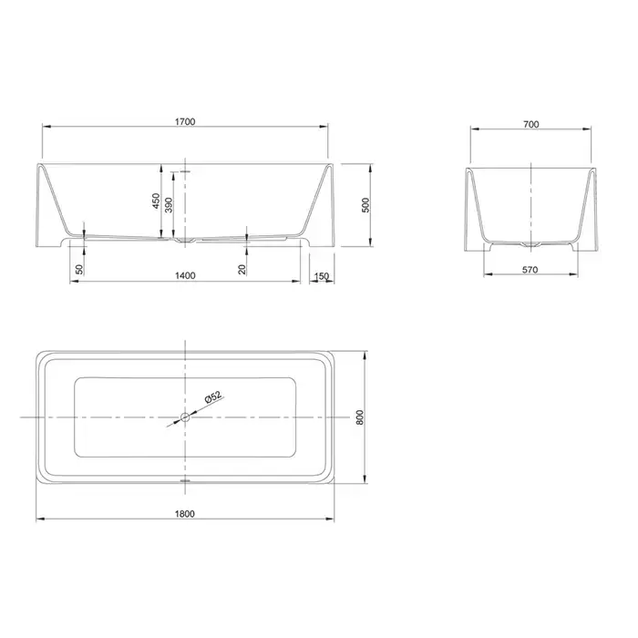 KNIEF Feel Ванна отдельностоящая 180х80х50 см, со сливом, цвет: белыйматовый