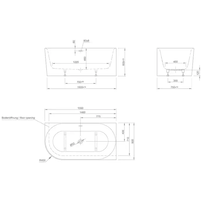 Knief Fresh XS Ванна в правый угол 155х80х60см.,слив щелевой, без слив-перелива, цвет: белый матовый